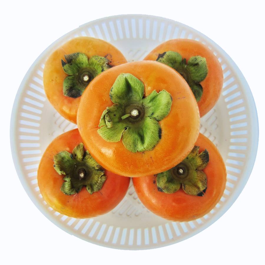 富有柿は、他の品種と比べて果肉の食感が良く、糖度が高いことが特徴です。丸みのある形をしていて、果皮はツヤのある橙紅色。甘みが強くて、サクサクした食感ですが、完熟すると柔らかくジューシー。ぜひご堪能ください。