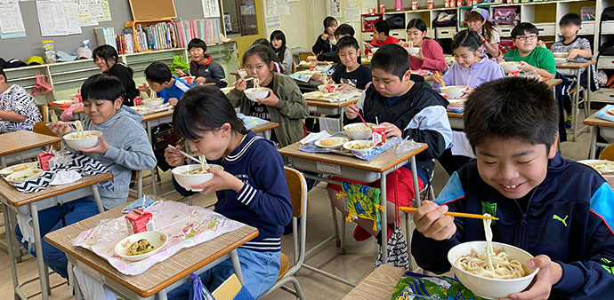 子どもたちに、地元特産品を学び、味覚を味わってもらうことで、郷土愛を育むことを目的に、