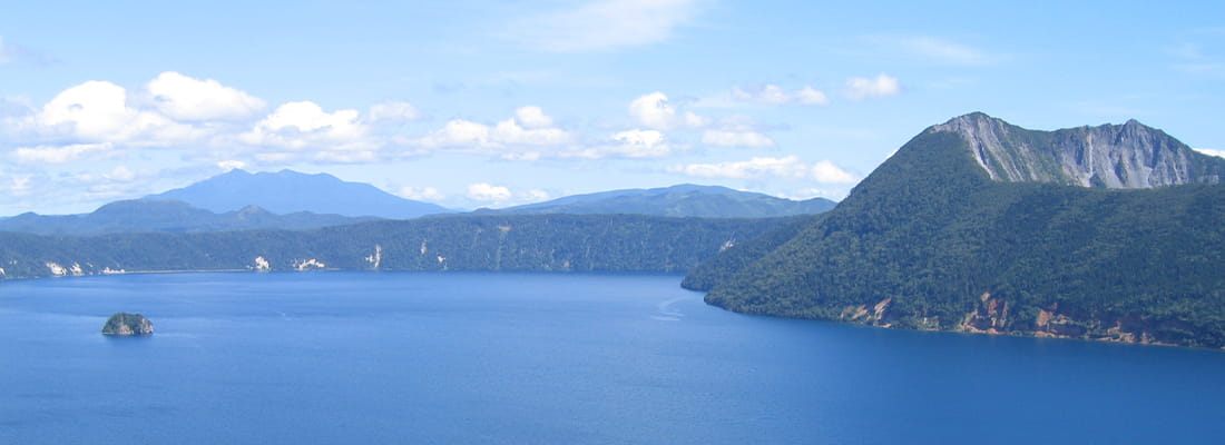 面積19.2㎢、周囲約20km、最深211.4mを誇る神秘の湖「摩周湖」は、注ぎ込む川も流れ出る川もないのに、水位はいつも変わらない不思議な湖です。「霧の摩周湖」として全国的に有名ですが、よく晴れた日には、湖面が「摩周ブルー」と呼ばれる深い青色に染まる、まさに神秘的な湖です。