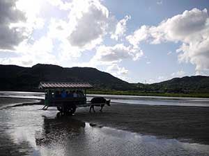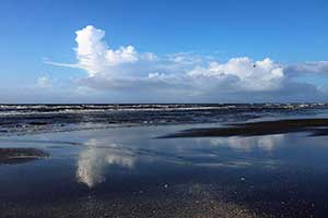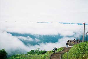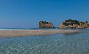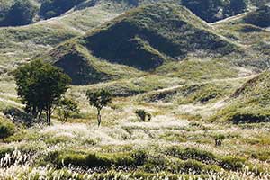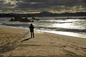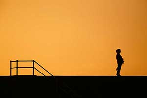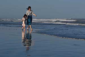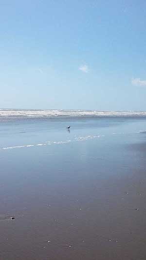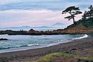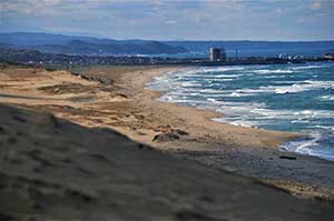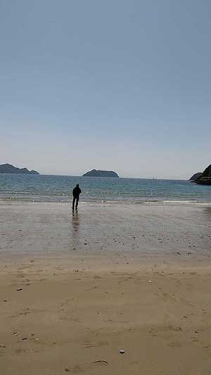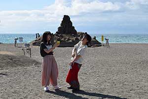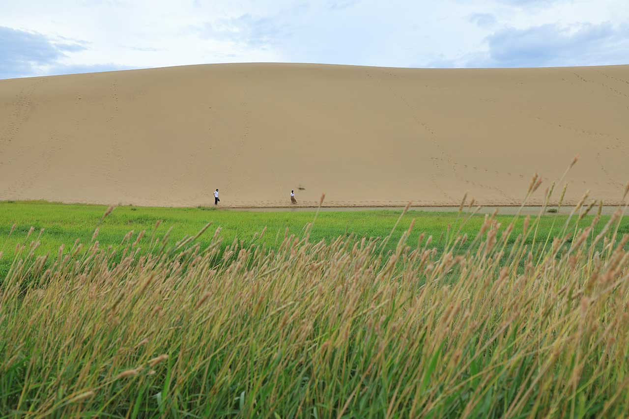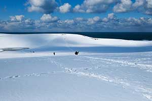 砂丘の砂地につけられた足跡は、二人が歩いた水平の足跡と砂丘の上まで続く足跡とが別な流れを作り出している。