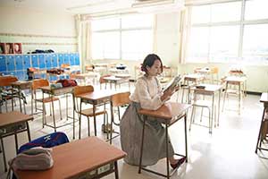細部まで観察してみると風を感じてくる、手前の草地と女性のスカートが緩やかになびいている。
